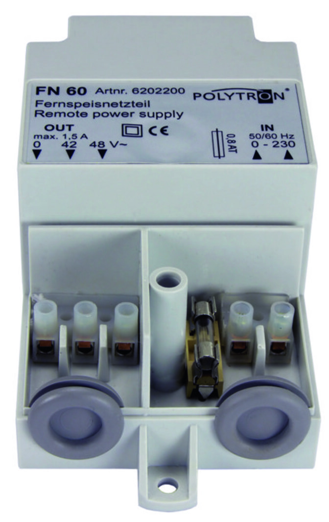 Dálkový napájecí zdroj FN 60 slouží k externímu napájení zesilovačů přes koaxiální kabel.