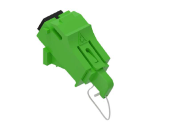 SC/APC adaptér v úhlovém provedení, který pasuje do otvoru pro keystone.