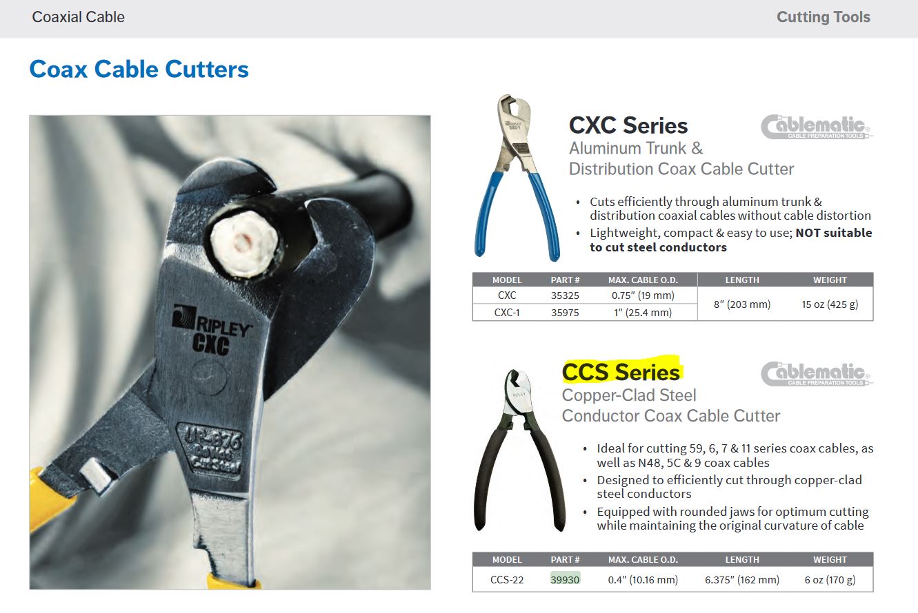 Ideální pro stříhání koaxiálních kabelů řady 59, 6, 7 a 11 a také koaxiálních kabelů N48, 5C a 9