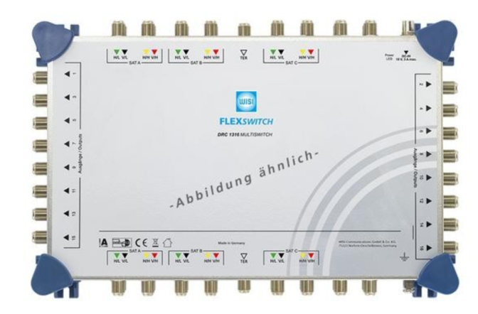 DRC 1312 je kaskádový multipřepínač s 13 vstupy pro distribuci tří satelitů a pozemních signálů.
