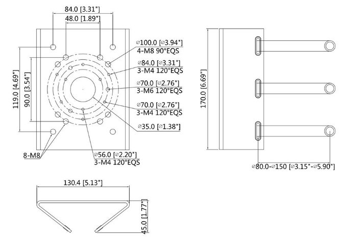 Rozteč úchytů pro stahovací pásky je 42 mm.
