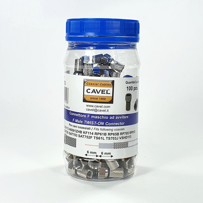 Kvalitní šroubovací neboli twist-on F konektor od prověřeného italského výrobce CAVEL.