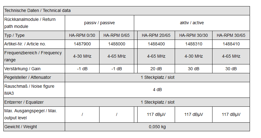 Zpětný kanálový modul pro HA zesilovače 0 dB, 30 MHz