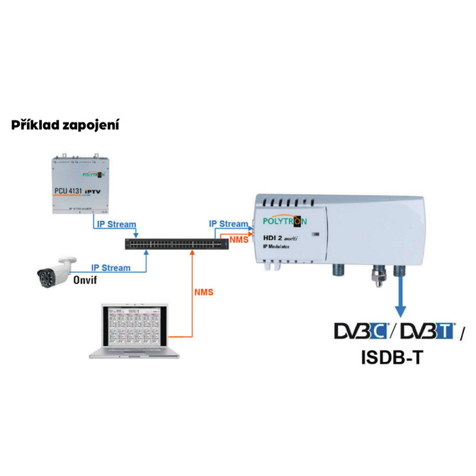 IP modulátor HDI 2 konvertuje IP signály z streamerů, bezpečnostních kamer nebo jiných