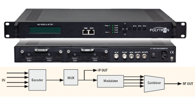 Modulátor HDM-2 C01 převádí dva signály HDMI a ASI na DVB-C (QAM). Signál je k dispozici také jako IP stream a lze jej přenést do sítí IPTV.