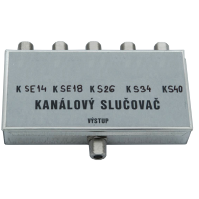 Minimální odstup slučovaných kanálů: 3 kanály. V obráceném směru pracuje jako kanálový rozbočovač.