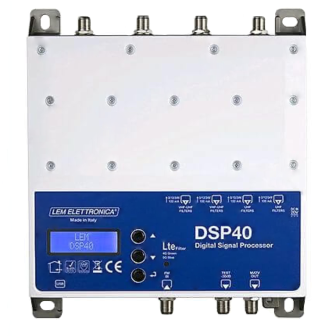 Programovatelný DVB-T/T2 zesilovač s pěti vstupy a konvertory (Digitální signálový procesor) pro až 32 multiplexů DVB-T / T2 + VKV FM + DAB/ BIII