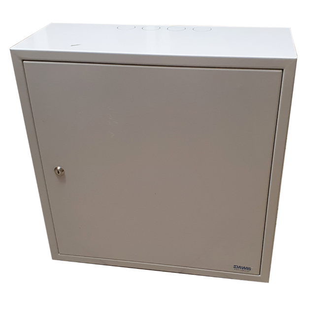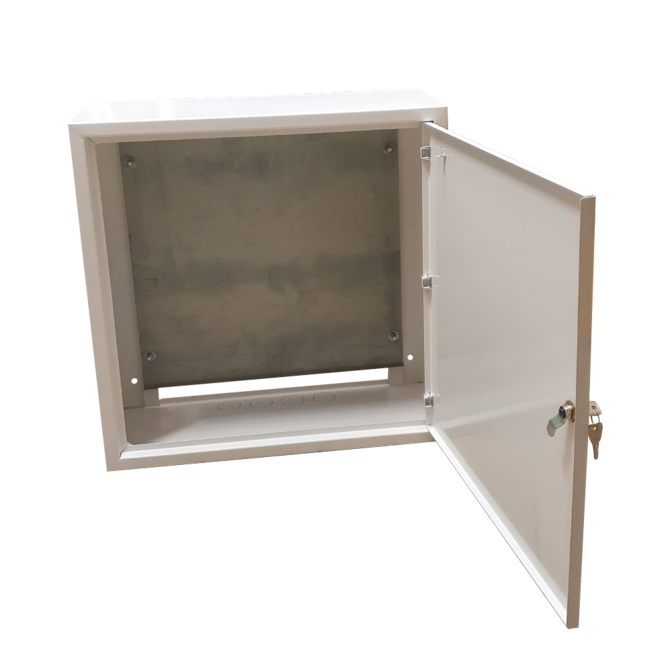 Skříň je vyrobena z pozinkovaného materiálu proti zrezivění s povrchovou úpravou bílé barvy.