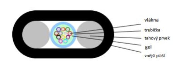Optický kabel obsahuje optická (skleněná) vlákna, která zajišťují rychlý přenos paprsku z bodu A do bodu B s co nejnižší ztrátou.