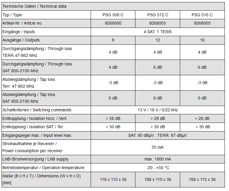 Multipřepínač kaskádový 5/16, pasivní terr.