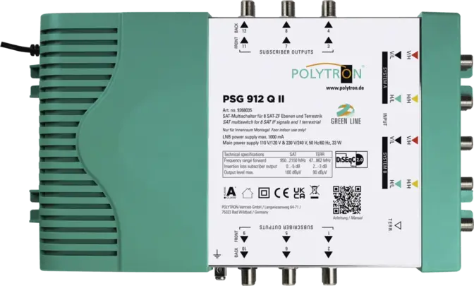 Multipřepínač koncový 9/12 pro distribuci 4 SAT IF polarizací a pozemního signálů.
