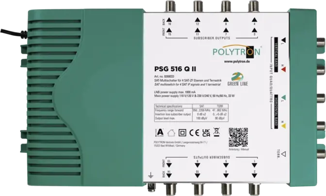 Multipřepínač koncový 9/16 pro distribuci 4 SAT IF polarizací a pozemního signálů.