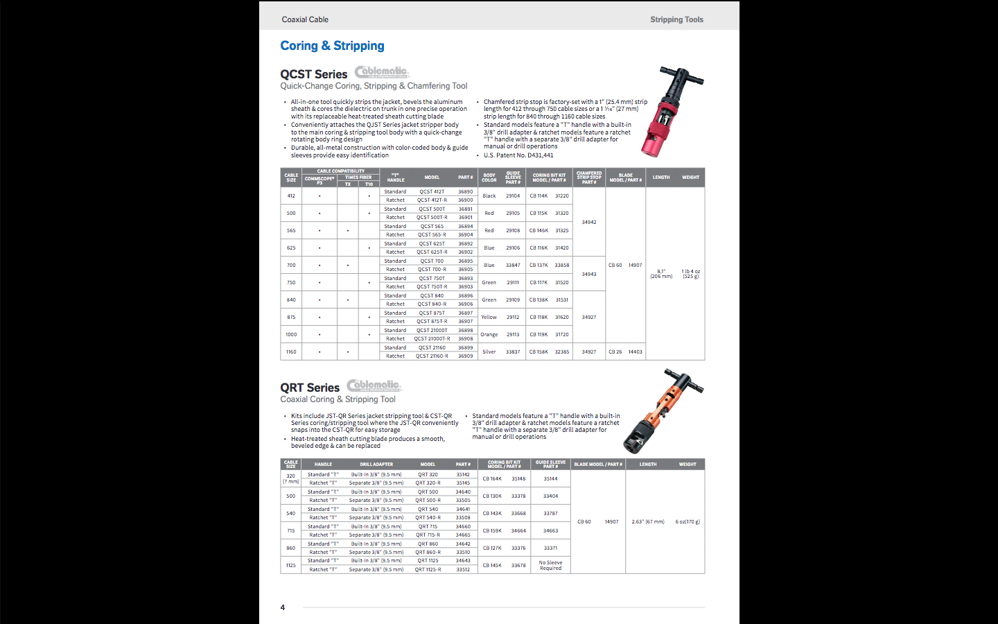 Souprava obsahuje nástroj pro odstranění a nástroj pro odizolování pláště, T