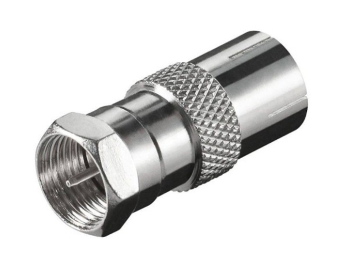 Redukce pro možnost připojení starších kabelových rozvodů s klasickými IEC konektory na moderní anténní zesilovače s F konektory