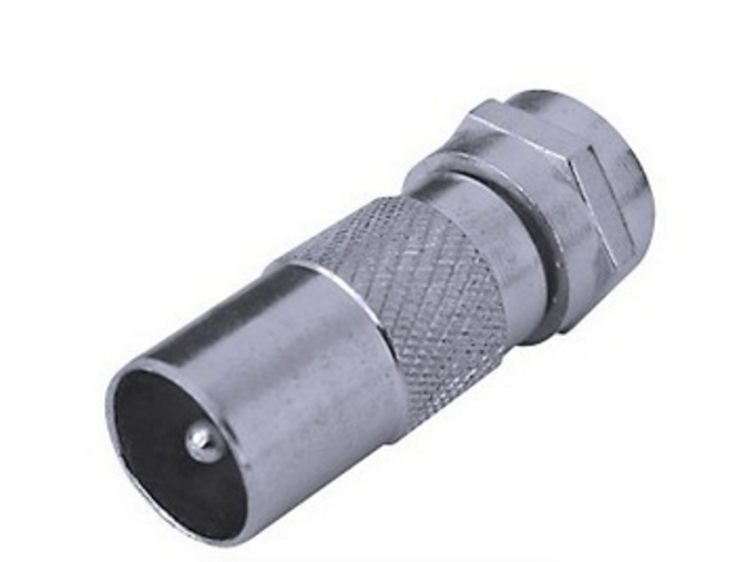 Redukce pro připojení klasických anténních nasouvacích konektorů IEC na zesilovače se šroubovacími F konektory