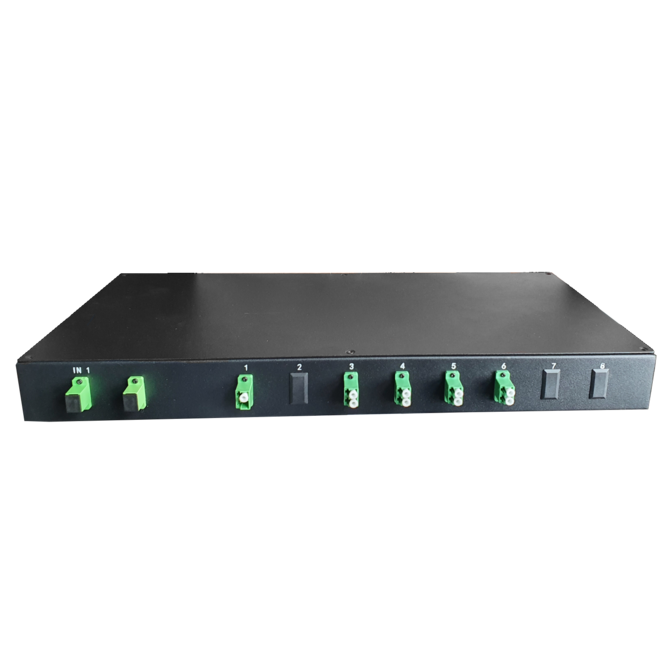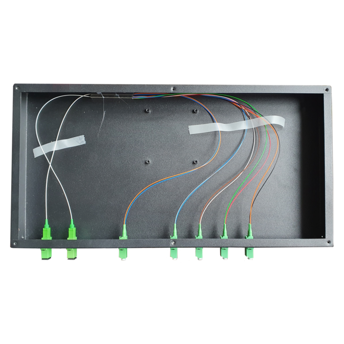 plně osazený splitterem 1 SC/APC -> 8 LC/APC