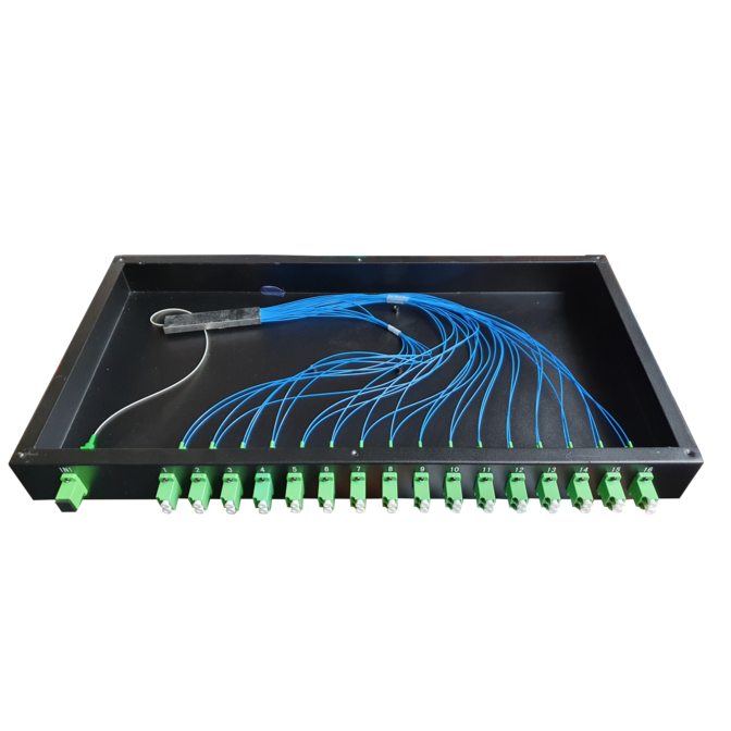 plně osazený splitterem 1 SC/APC -> 32 LC/APC