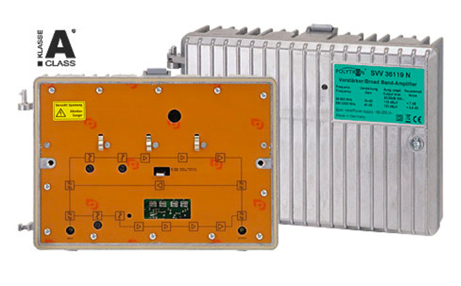 Super širokopásmový zesilovač, 34 dB,119 dBµV, 230V~, zpětný směr 65 MHz