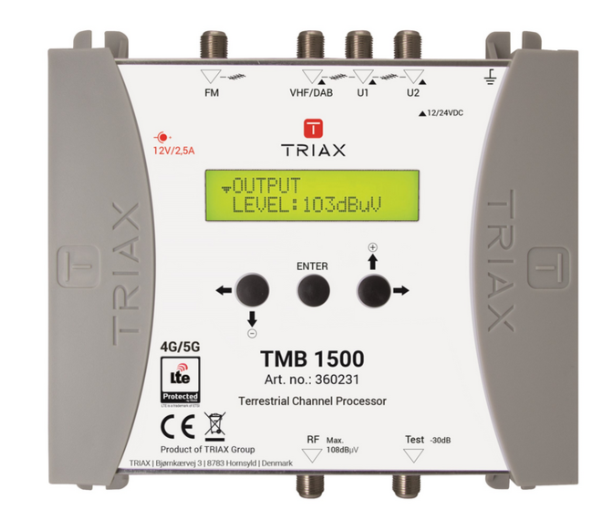Možnost kompenzovat naklonění kabelu snížením výstupní úrovně FM a DAB-VHF ve srovnání s úrovní UHF