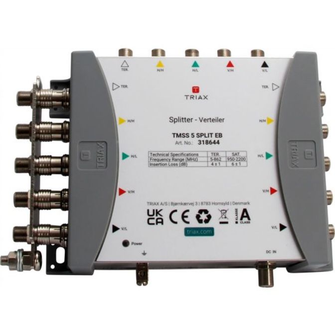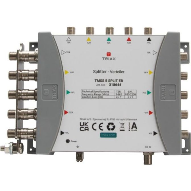 TMSS 5 SPLIT EB je 5vstupový rozbočovač navržený pro použití v kaskádových systémech k rozdělení přijímaných signálů do několika hlavních linek.