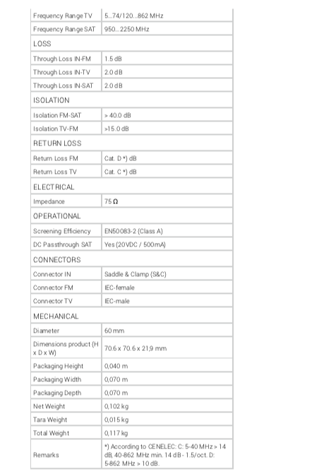 | průchozí útlum (dB): | 2 |