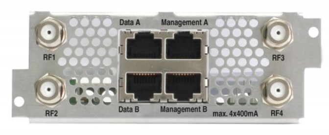 4 physical signal input jacks for processing of 16 DVB-S2X signals into IP multicast groups; 8 MPTS or 504 SPTS (activation via SPTS license)