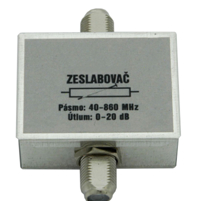 Osazen trimrem. Útlum v pásmu 40 – 862 MHz plynule nastavíme otočnou hřídelkou. Průchozí pro napájení