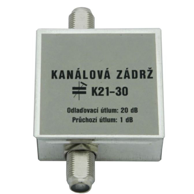 Dvouobvodová kanálová zádrž pro jeden kanál v pásmu K21 – 30. Ladění 2 x kvalitní kapacitní trimr 1 – 5 pF. Průchozí pro napájení. Zádrž je určena pro montážní firmy, které jsou vybaveny měřicí technikou.