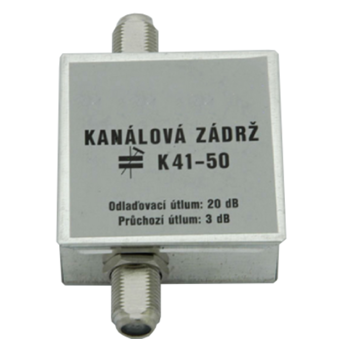 Dvouobvodová kanálová zádrž pro jeden kanál v pásmu K41 – 50. Ladění 2 x kvalitní kapacitní trimr 1 – 5 pF. Průchozí pro napájení. Zádrž je určena pro montážní firmy, které jsou vybaveny měřicí technikou.