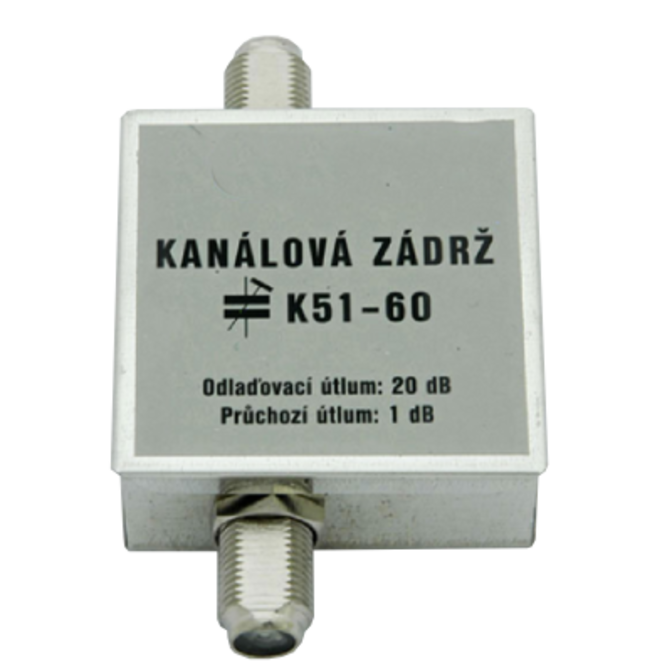 Dvouobvodová kanálová zádrž pro jeden kanál v pásmu K51 – 60. Ladění 2 x kvalitní kapacitní trimr 1 – 5 pF. Průchozí pro napájení. Zádrž je určena pro montážní firmy, které jsou vybaveny měřicí technikou.